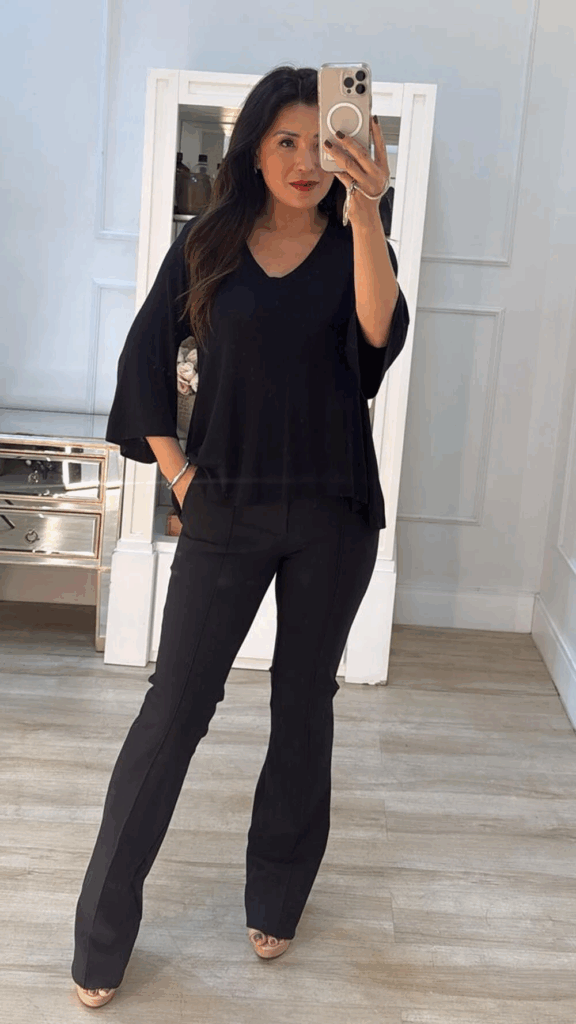 Modelagens que valorizam sem apertar e tecidos que acompanham o corpo. Na black friday, é o momento ideal para garantir aquela calça que transita do casual ao sofisticado com naturalidade.