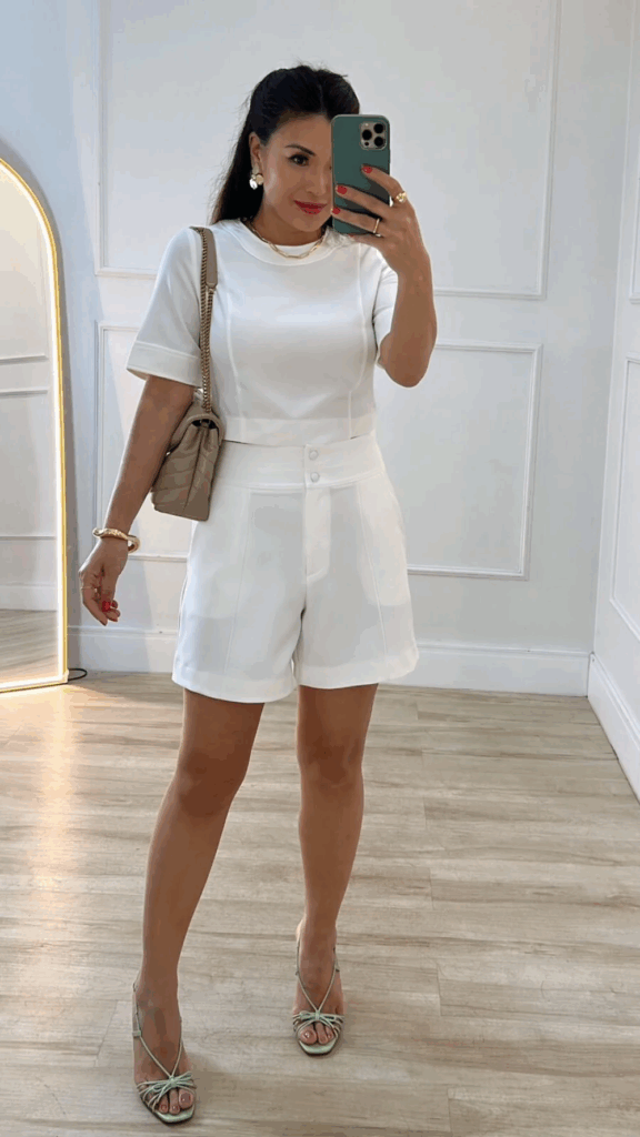 O short alfaiataria deixou de ser apenas uma peça alternativa ao jeans para se tornar protagonista em produções modernas e sofisticadas. Sua modelagem reta, cintura marcada e tecidos mais estruturados trazem a mesma elegância da calça de alfaiataria, mas com a leveza necessária para o dia a dia. É a peça perfeita para mulheres que buscam versatilidade sem abrir mão da personalidade no look.