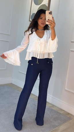 Poucas peças têm o poder de transformar a silhueta como a calça flare. Com cintura alta, corte ajustado até o joelho e abertura sutil na barra, ela alonga as pernas, valoriza as curvas e transmite sofisticação instantânea. Seja no escritório, em um evento social ou em produções do dia a dia, essa modelagem se mantém atual justamente porque consegue unir conforto e elegância em qualquer situação.