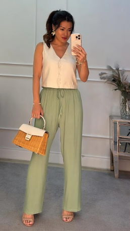 - Calças de linho em cores claras, ideais para jantares ou eventos ao ar livre.